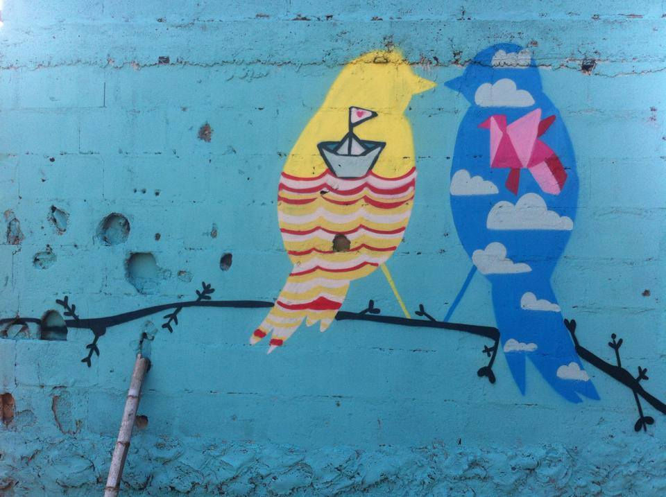 Me contó que estuvo pintando por México y Nueva York ahí conoció lugares encantadores, gente maravillosa, y entendió que, posiblemente, los viajes sean la respuesta inspiradora de su arte y por eso su firma, esos múltiples barquitos de papel que viajan sin detenerse por las paredes del mundo entre animales maravillosos e historias alucinantes.